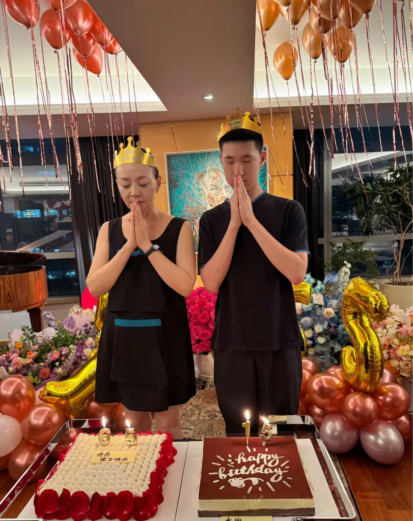 近日,一组宋丹丹与林永健儿子林大竣共同庆生的照片在网络上引发热议。画面中,两人头戴卡通生日帽,置身于布满气球与鲜花的派对场景,双手合十闭眼许愿,笑容灿烂而放松。宋丹丹身穿简约白色T恤搭配牛仔裤,林大竣则选择黑色休闲卫衣,两人打扮随性却难掩亲密。这场看似寻常的生日会,因主角的特殊关系而透露出娱乐圈中难得的温情底色。