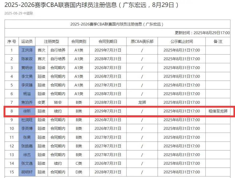 1. 租借形式与合同年限:徐昕与广州签下4年B类合同(至2029年),但实际以租借形式效力,广东保留其注册权。