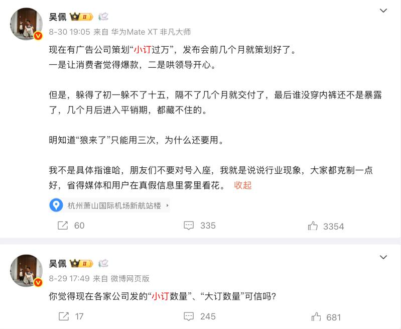 汽车博主 “吴佩” 在社交平台透露,现在有广告公司在发布会前几个月就准备好 “小订过万” 的策划,博主没有指名道姓,而这样的做法显然违背行业诚信精神和公正竞争精神,甚至已经涉嫌违反《广告法》等相关法律规定。