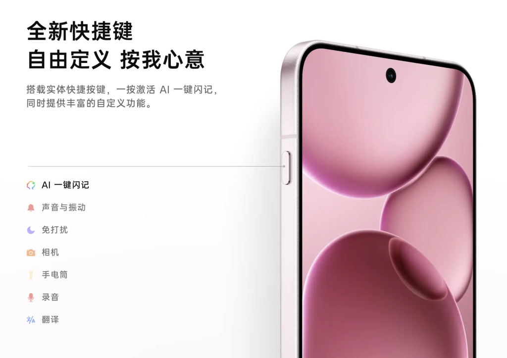 关注手机圈的朋友不难发现,自去年一批旗舰机起,「AI 键」悄然出现在手机侧面。iPhone 16 系列和 OPPO Find X8/X8s 系列率先砍掉原先的三段式拨杆,采用全新独立按键;华为 Mate 70 系列将电源键 “改头换面” 为 AI 智控键;Nothing Phone (3a) 系列也配备了 Essential Key。这些按键虽名称各异,但定位均为多功能快捷键,除可一键触发录音、手电筒、状态切换等基础功能外,更是当下 AI 功能的系统级入口,像 OPPO 的 AI 闪记、同声传译等功能皆可由此启动。不仅如此,除魅族 22 外,即将到来的 vivo X300 系列也基本确认将在机身加入类似的「AI 键」。