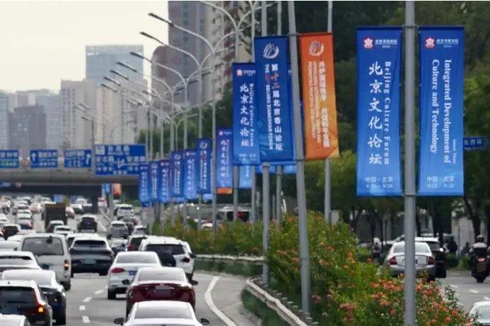 9 月 17 日,走在北京的北四环中路,便能感受到 2025 北京文化论坛的浓厚氛围,道路两旁已悬挂起本次论坛的道旗。据悉,以 “传承・创新・互鉴” 为永久主题、以 “文化和科技融合发展” 为年度主题的 2025 北京文化论坛,将于 9 月 23 日至 24 日正式在京举办。