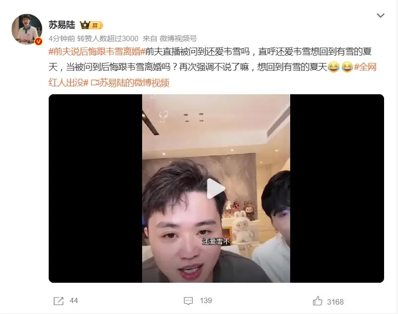 而陈平却在签约其团队后,被指试图”分羹流量”。他在直播中频频怀念家庭生活,称韦雪”仍是孩子妈妈”,并毫不掩饰对前妻如今美貌与事业成功的羡慕。