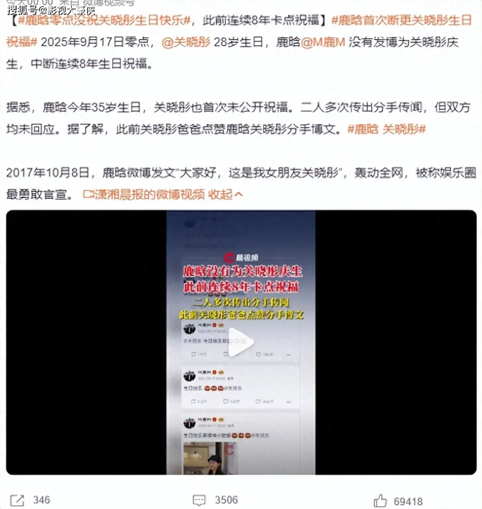 然而,变化从今年鹿晗 35 岁生日开始显现。以往会第一时间送上祝福的关晓彤,今年却毫无动静,社交平台上未发布任何与鹿晗生日相关的内容。当时就有网友猜测两人感情可能出现问题,但因无其他实锤,传闻很快被新的娱乐话题覆盖。直到关晓彤 28 岁生日,鹿晗的 “零祝福” 让传闻再次发酵 —— 要知道,过去八年,无论两人工作多忙,彼此的生日祝福从未缺席,哪怕只是简单的一句 “生日快乐”,也会让粉丝安心。而今年,鹿晗的社交平台如常更新日常动态,却对关晓彤的生日只字未提,这种 “刻意的沉默”,让不少网友直言 “这已经是很明显的信号了”。