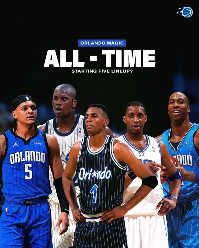 2025 年 9 月 20 日,奥兰多魔术队官方社交媒体抛出一枚 “篮球情怀炸弹”—— 晒出一张由安芬尼・哈达威(便士)、特雷西・麦克格雷迪(麦迪)、保罗・班凯罗、沙奎尔・奥尼尔(鲨鱼)与德怀特・霍华德(魔兽)组成的历史先发五人组海报,并以 “你心目中奥兰多魔术队的历史首发五人组是谁?” 为题,邀请球迷共同探讨。这一话题迅速点燃篮球圈热情,无论是见证过魔术队巅峰岁月的老球迷,还是关注球队新生代的年轻球迷,都纷纷参与讨论,而官方给出的这套阵容,既承载着球队的辉煌过往,也暗含着对当下与未来的期许。