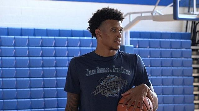 杰伦-布里奇斯出生于2001年5月,现年24岁,身高6尺7寸(约201厘米)或6尺8寸(约203厘米,不同报道略有差异),体重220磅(约100公斤),毕业于篮球名校贝勒大学。在2024年NBA选秀大会上,布里奇斯遗憾落选,但很快得到了菲尼克斯太阳队的青睐,获得了一份双向合同,这本身就说明了他的潜力得到了专业球探的认可。