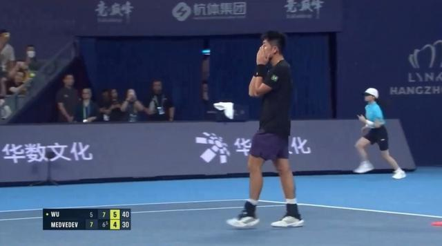 比赛伊始,双方就迅速进入状态,展开了激烈的争夺。首盘比赛,吴易昺与梅德韦杰夫的每一次发球局都打得异常胶着。在第 7 局,两人陷入了长达数回合的拉锯战,梅德韦杰夫凭借出色的底线技术和顽强的斗志,先后逼出 3 个破发点,现场气氛瞬间紧张到了极点。然而,吴易昺展现出了强大的抗压能力,凭借精准的发球和灵活多变的战术,成功化解了对手的破发危机,艰难保发成功。此后,双方各自稳守发球局,比分一路战至 5-5 平。但在关键的第 11 局,梅德韦杰夫抓住吴易昺的一次失误,率先完成破发,以 6-5 取得领先,并顺利拿下自己的发球胜盘局,以 7-5 先下一城,取得了首盘比赛的胜利。