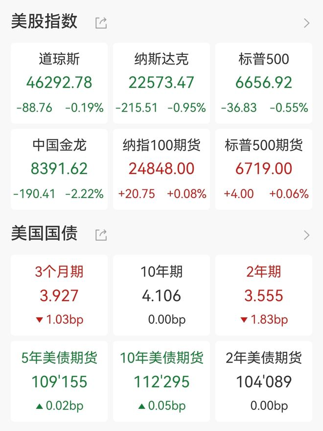 中概股的表现同样惨淡,纳斯达克中国金龙指数收跌 2.22%。百度跌超 8%,知乎跌超 5%,哔哩哔哩跌超 4%,好未来、新东方等教育股均跌超 3%。不过市场并非一片悲观,”木头姐” 凯西・伍德旗下基金四年来首次重新购入阿里巴巴股票,显示出部分机构投资者对中概股估值底部的认可。