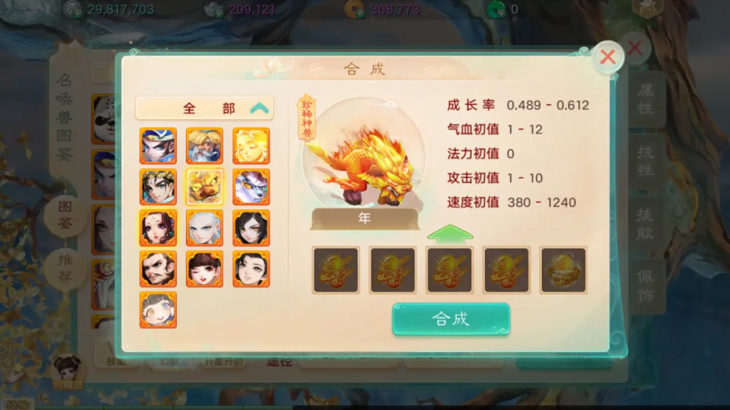体验派玩家可选择最低成本方案:使用1个一级五行材料(约9000万银两)即可续灵30天。按此计算,全年体验成本约10.8亿银两,仅相当于传统神兽成本的6%。这种模式特别适合新区玩家或战术性使用需求。