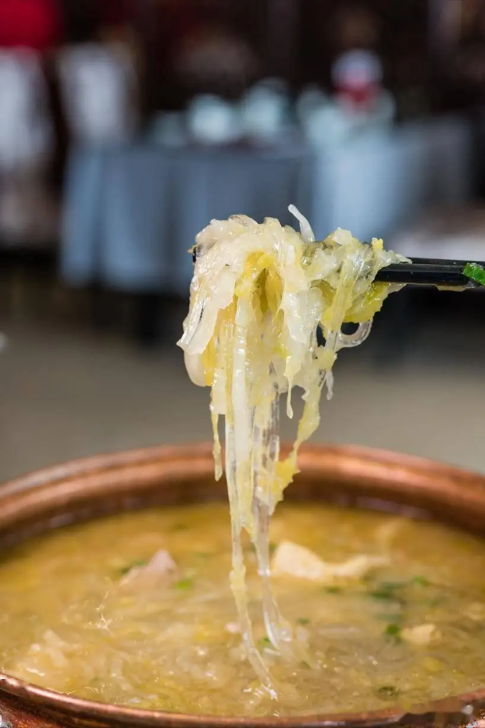 东北的炖菜,是冰天雪地里长出的“热量堡垒”。酸菜炖粉条被称为“四大炖”之首,酸菜是东北人用时间驯服寒冷的杰作——大白菜经盐与乳酸菌发酵,脆爽酸香,与五花肉、粉条共炖,酸味化解油腻,粉条吸饱肉汤,连汤带菜“嗦喽”一口,从喉咙暖到脚底。而小鸡炖蘑菇则是山珍与家禽的完美联姻,野生榛蘑的木质香气渗入鸡肉纤维,炖出一锅金黄浓汤,逢年过节端上桌,寓意“吉祥团圆”。最霸道的当属鲶鱼炖茄子,民谚“鲶鱼炖茄子,撑死老爷子”道尽它的鲜美——茄子吸足鱼脂软如绸缎,鲶鱼肥嫩无刺,乳白汤汁泡饭,三碗下肚仍意犹未尽。