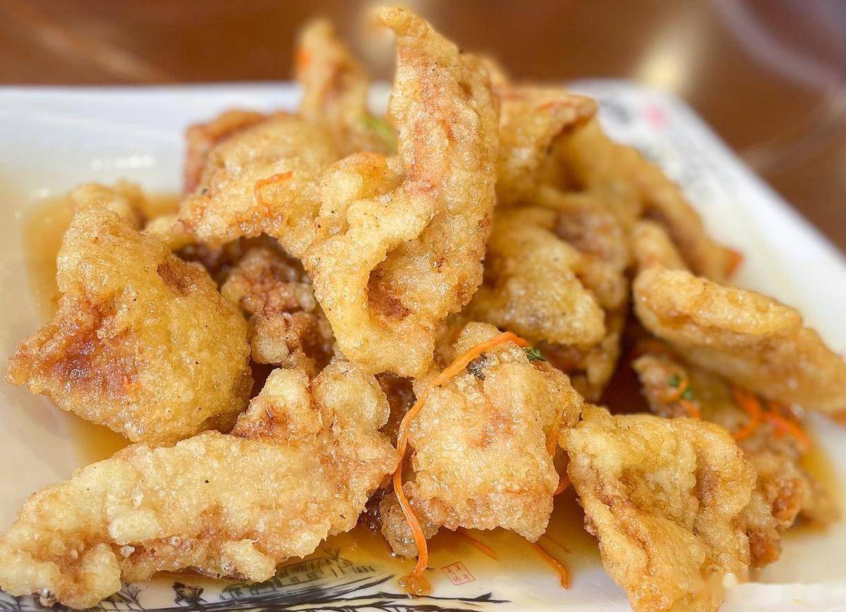 若说炖菜是东北的“土味”,那油炸菜则显露其融合创新的锋芒。锅包肉堪称东北菜的国际名片,光绪年间哈尔滨道台府厨师郑兴文为俄宾改造鲁菜“焦烧肉条”,用糖醋汁替代咸鲜口,成就了金黄酥脆、酸甜呛鼻的经典。2011年,这道菜更入选哈尔滨非遗,从外交宴席飞入寻常餐桌。而溜肉段则更显草根智慧——猪梅肉裹土豆淀粉炸至外壳焦脆,内里却嫩得冒汁,咸香芡汁裹着青椒胡萝卜,是婚宴家宴上“比锅包肉还得劲”的存在。就连素菜地三鲜也靠油炸脱胎换骨:土豆茄子青椒经大油锅洗礼,外酥里嫩,酱汁一浇,三味平价食材瞬间升华成“下饭神器”。