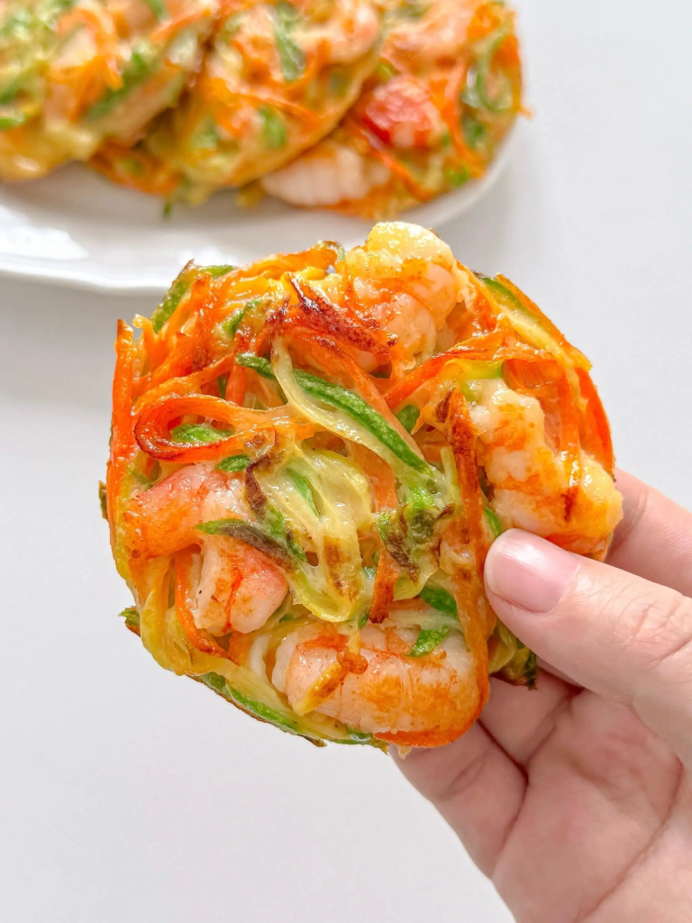 虾仁处理上的考量同样科学:切成”蚕豆大的丁”而非完全剁碎,既确保了蛋白质网络不被过度破坏(保持弹性),又增大了表面积以促进美拉德反应,使煎制时产生更丰富的风味物质。她对面糊比例的把握——”两把面粉”配”一小勺玉米淀粉”,形成了复合基质:面粉中的面筋提供结构支撑,而玉米淀粉则促进脆性并降低筋度,这与专业烹饪中常用的”淀粉调节”技术不谋而合。面糊的浓稠度被描述为”像浓稠的酸奶”,对应食品科学中的”50-60%固形物含量”理想状态,过稀会导致煎制时水分蒸发过快使饼体干硬,过稠则影响口感。