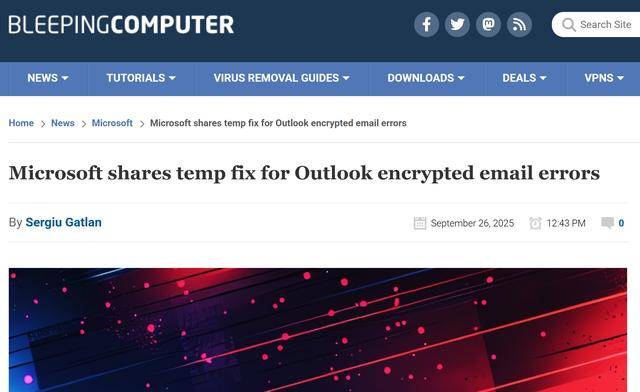- 客户端补丁:预计微软将发布Outlook客户端的更新,修复导致解密失败的底层代码问题。这类更新可能通过Microsoft Update渠道推送,可能需要用户重启Outlook或整个系统。