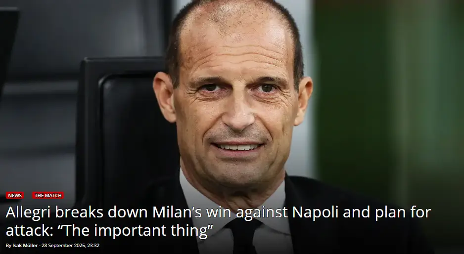 不过,阿莱格里也通过米兰的胜利证明那不勒斯并非不可战胜。他特别提到历史数据的改变:”近几年,米兰在主场对阵那不勒斯时始终未能取胜——希望我们能扭转这一数据”。这场胜利或许预示着意甲争冠格局正在发生微妙变化,尽管那不勒斯仍是最大热门,但米兰、国米等队的挑战将更加有力。正如阿莱格里所言:”这是一场很棒的比赛,也是本赛季首场强强对话,会是一次重要的考验”。